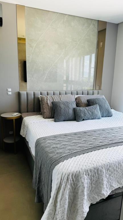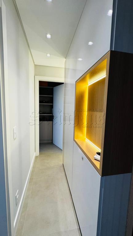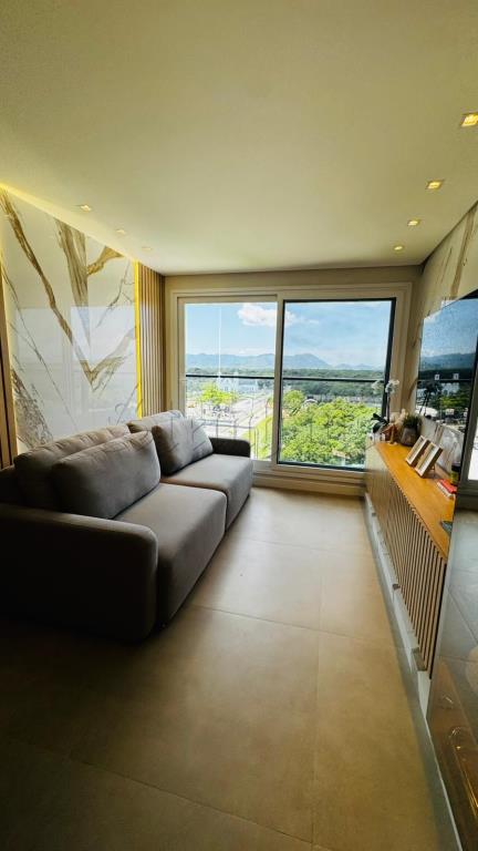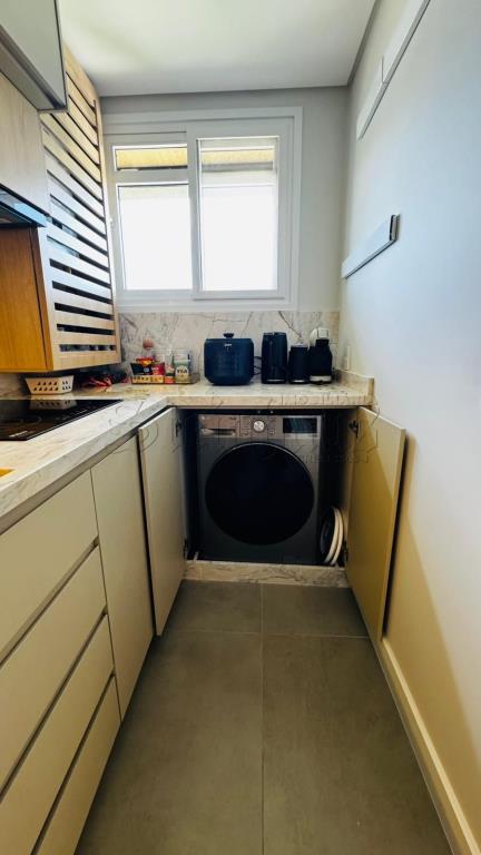 Nos intes do apartamento tem 1 cama de casal, 1 televisor, 1 sofá, utensilios de cozinha, liquidificador, microondas, forno elétrico, máquina de lavar louça, máquina de lavar roupa lava e seca.